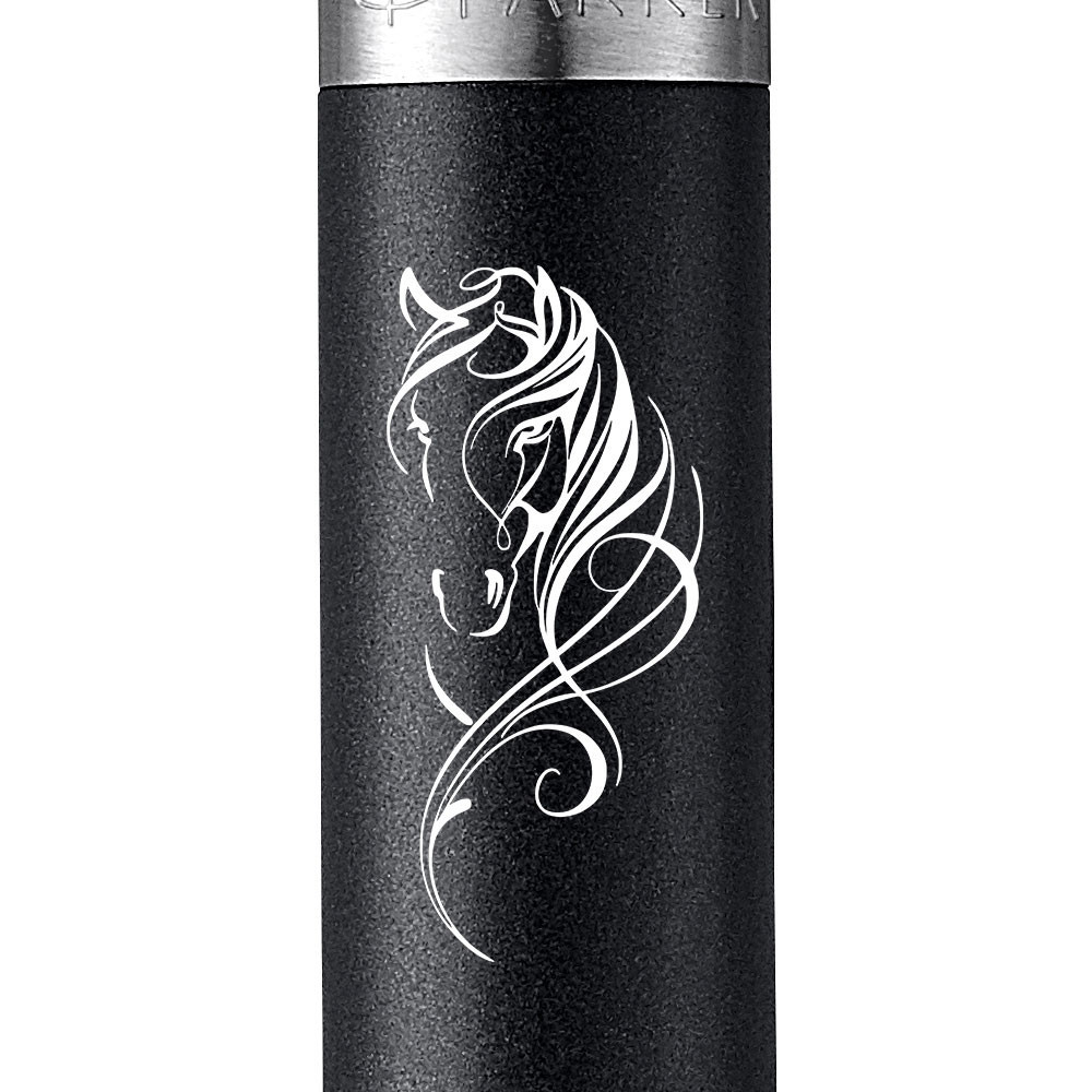Кулькова ручка Parker JOTTER ZODIAC Bond Street Black CT [Червоний кінь] в матово-чорному сталевому дизайні з дуже жіночним лазерним гравіюванням, присвяченим символу 2026 року. Згідно зі східним календарем, покровителем 2026-го року буде Кінь, який символізує родючість і силу, свободу і вірність, фізичну силу та мужність.