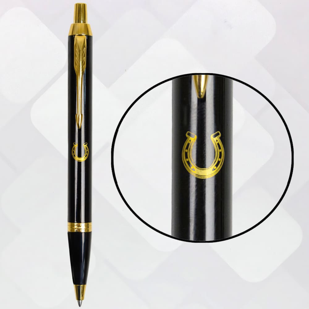 Parker IM DESIGN Black GT [Підкова на щастя] – ексклюзивна кулькова ручка з чорним глянцевим лаком, позолотою та лазерним гравіюванням. Дизайн гравіювання з підковою – символом удачі – цікава святкова пропозиція до 2026 року, який, згідно зі східним календарем, пройде під заступництвом Коня.