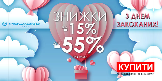 Знижки від -15% до -55% на Piquadro до Дня св. Валентина!