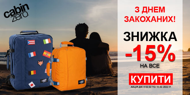 Знижки -15% на весь CabinZero до Дня св. Валентина!