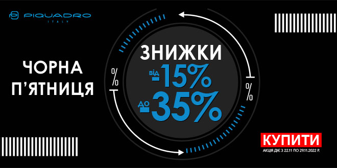 Чорна п'ятниця (Black Friday) 2022 Знижки до -35% на Piquadro!
