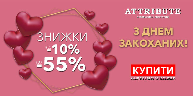 Знижки від -10% до -55% до Дня св. Валентина!