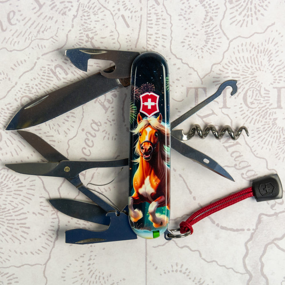 Символом 2026 року згідно зі східним календарем буде Кінь, який символізує родючість і силу, свободу і вірність, фізичну силу та мужність. Модель гідно поповнить вашу власну колекцію ножів Victorinox та виступить у ролі цікавого новорічного подарунка чи людям, народженим у рік Коня.