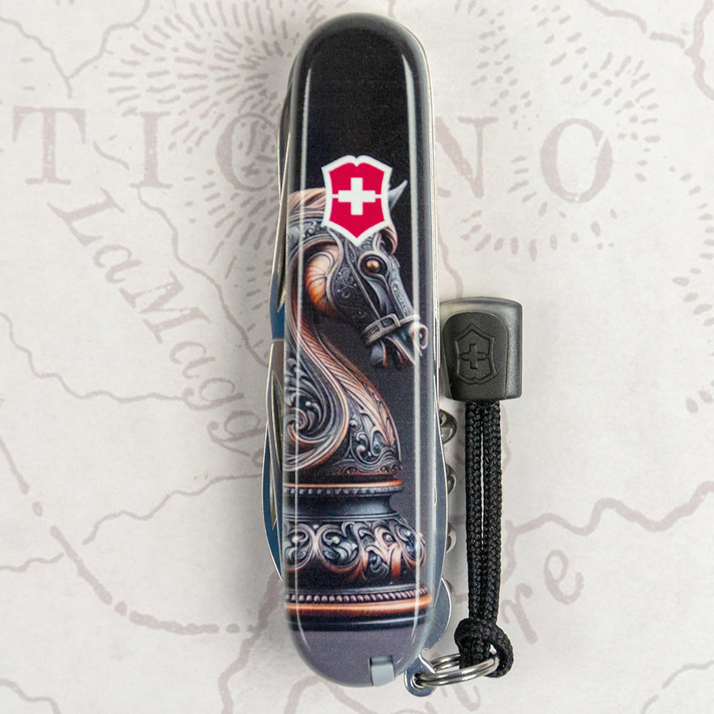 Символом 2026 року згідно зі східним календарем буде Кінь, який символізує родючість і силу, свободу та вірність, фізичну силу та мужність. Модель гідно поповнить вашу власну колекцію ножів Victorinox та виступить у ролі цікавого новорічного подарунка або людям, які захоплюються шахами або народжені у рік Коня.