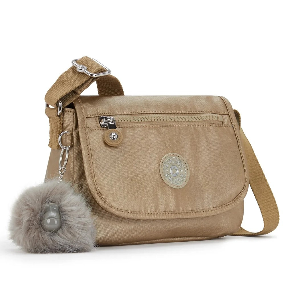 Маленька золотиста сумочка Kipling SABIAN U із клапаном на магніті та крутим брелоком. Сумка-сrossbody, яка чудово підходить для повсякденного носіння. Регульований ремінець дозволяє носити її через плече або просто повісити на плече. У будь-якому випадку, завдяки основному відділенню з магнітною застібкою, всі речі будуть під рукою.