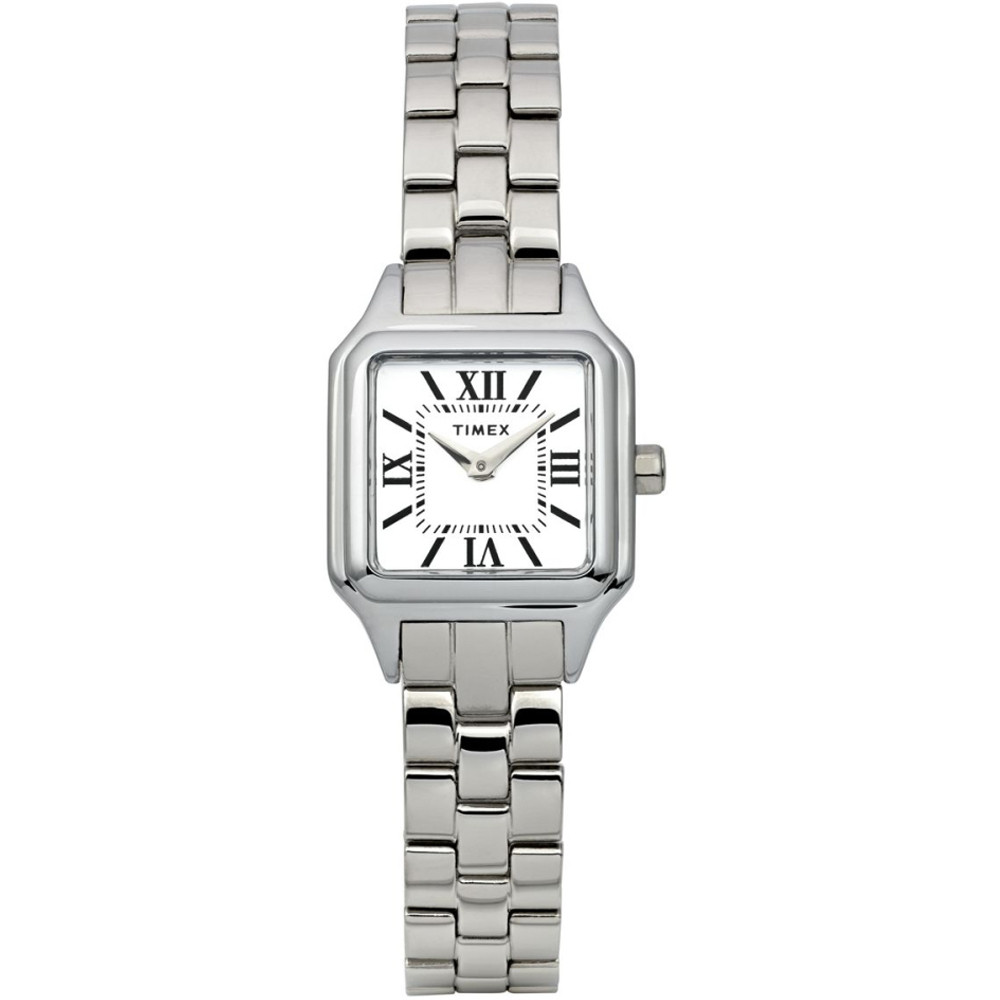 Сріблястий жіночий годинник Timex ADDISON Square з квадратним корпусом 23 мм і сталевим браслетом. Завдяки повністю полірованому оздобленню та мініатюрному квадратному корпусу зі скошеним безелем годинник Addison додає будь-якому образу вишуканості. Поліровані стрілки ідеально доповнюють браслет з неіржавної сталі, а чистий білий циферблат з римськими цифрами надає цьому мініатюрному годиннику ще більшої елегантності.