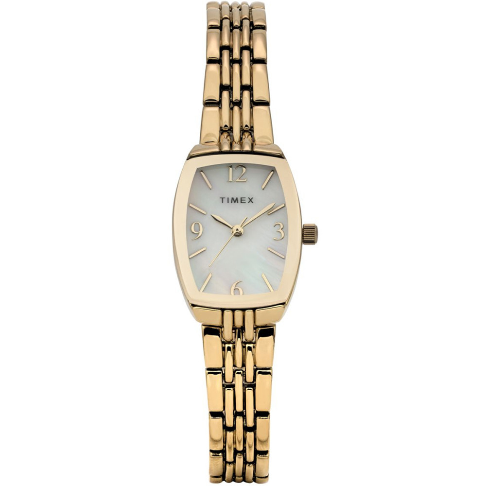Маленький жіночий годинник Timex CHARLOTTE з перламутровим циферблатом і золотистим браслетом. Модель Charlotte зачаровує унікальним склом, яке охоплює всю верхню поверхню корпуса, створюючи ілюзію ширяння над мініатюрним 21-міліметровим бочкоподібним корпусом. Поліроване оздоблення корпуса та браслета поєднується з лаконічним та ефектним одночасно перламутровим циферблатом. Браслет, що саморегулюється, оснащений знімними ланками, які можна підігнати за розміром без інструментів.