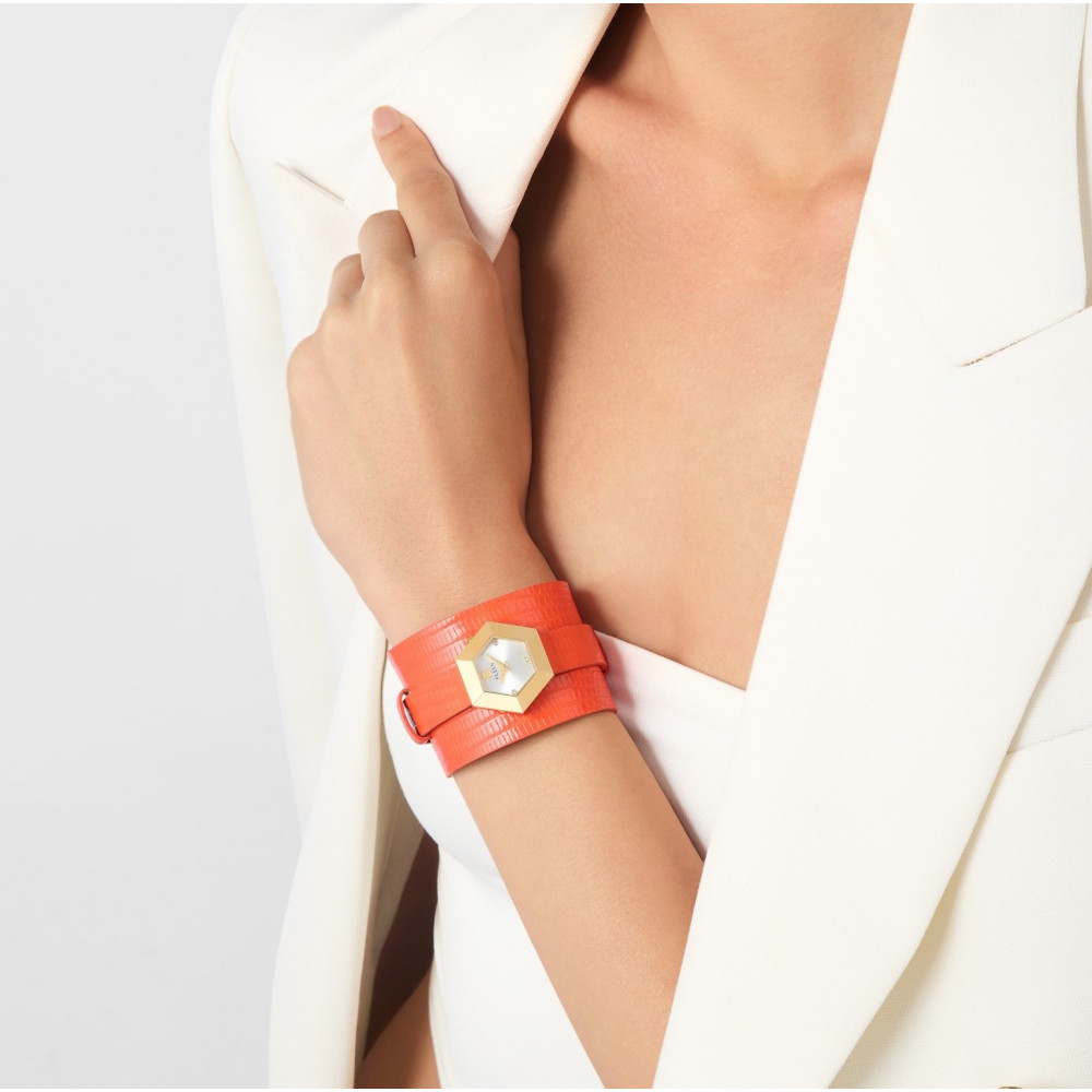 Жіночий брендовий годинник Philipp Plein PW6FA0325 LA JUNGLE DE PLEIN 28 мм з двома змінними ремінцями помаранчевого та коричневого кольору. Дикі серцем Philipp Plein представляють сміливе поєднання розкоші та усвідомлених інновацій у колекції La Jungle de Plein - екологічний годинник з анімалістичним принтом, створений для веганів. Поєднуючи екзотичний стиль із безстрашним духом, колекція втілює в собі неприборкану елегантність тваринного світу, переосмислену в екологічній формі. Кожен годинник має шестикутний корпус діаметром 28 мм, виготовлений із 100% переробленої неіржавної сталі, та подвійний ремінець із ефектної шкіряної альтернативи з яскравими анімалістичними принтами.