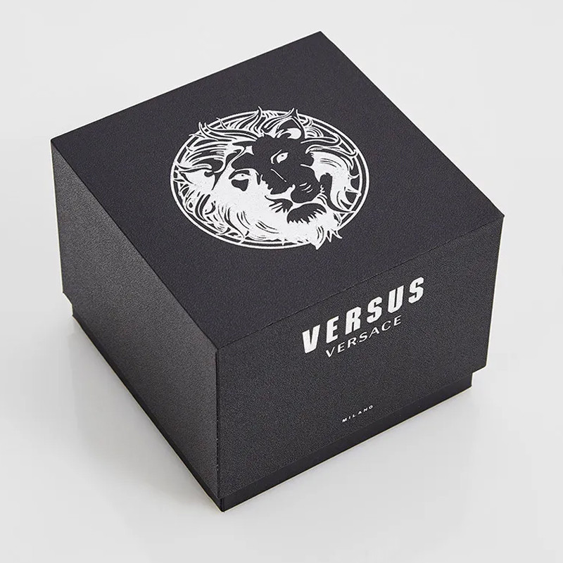 • Циферблат: золотистый с большим названием бренда Versus и люминесцентными стрелками