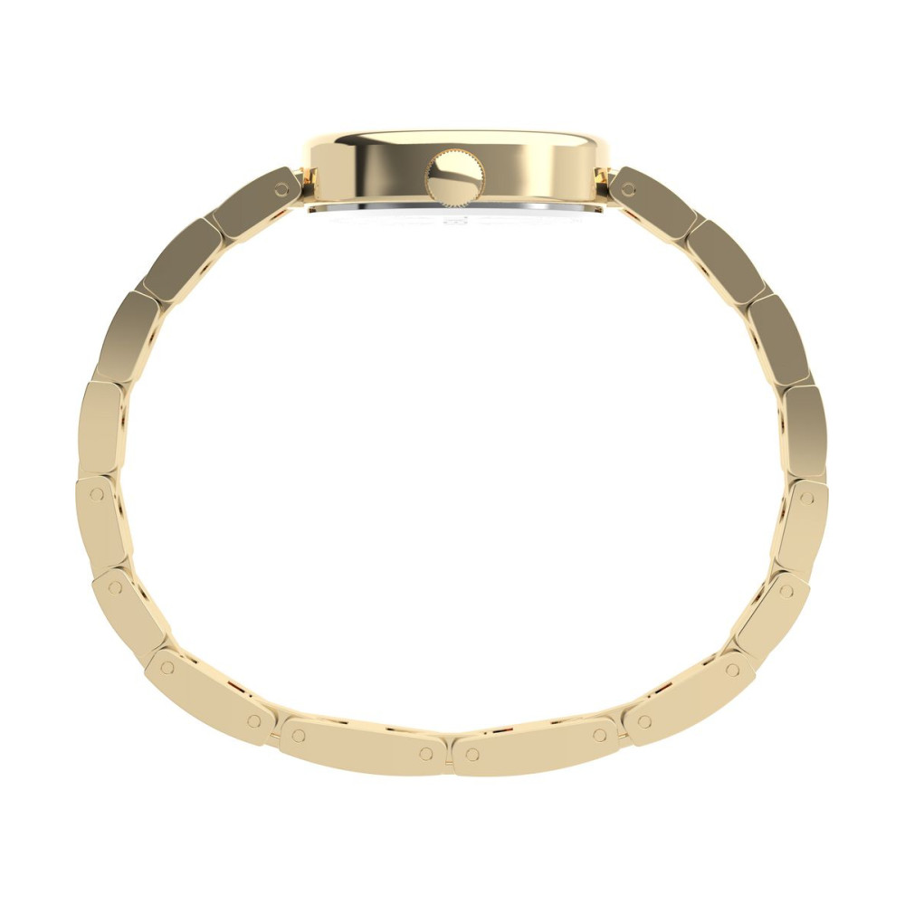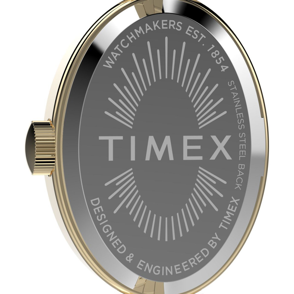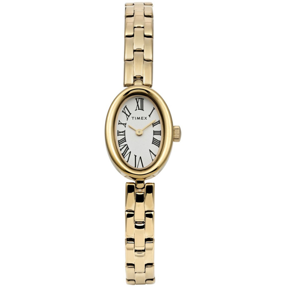 Женские маленькие овальные часы Timex CAVATINA с золотистым стальным браслетом. Обновленные часы Cavatina остаются верны своим корням. Вневременная элегантность в миниатюре: полированный 19-миллиметровый корпус классической овальной формы, изящно изогнутое минеральное стекло гармонирует с плавными линиями корпуса, а римские цифры украшают чистый циферблат. Женственный облик часов дополняет полированный браслет из переработанной нержавеющей стали с саморегулирующимися звеньями.