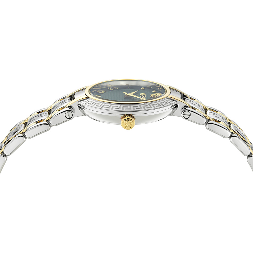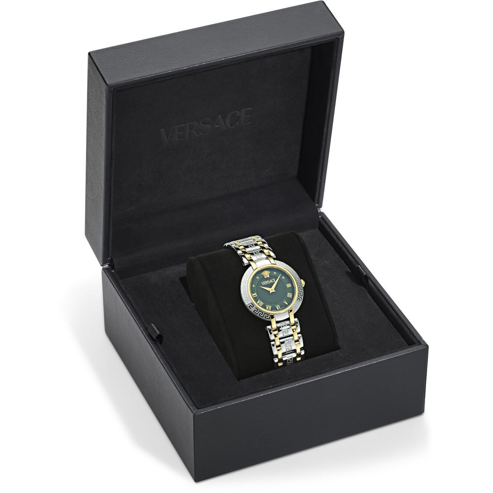 Versace ANTLIA 34мм/женские часы/кварцевые/зеленый циферблат/стальной браслет /50м/Сапфировое антибликовое стекло/Стальной корпус с GP Швейцария VE0P00425 Гарантия: 2 года
