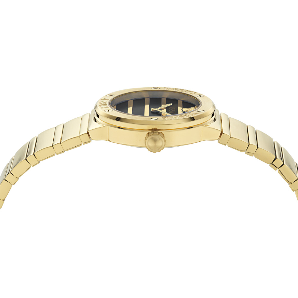 Versace GRECA LOGO PEARL 33мм/женские часы/кварцевые/перламутрово-черный циферблат/стальной браслет /30м/Сапфировое антибликовое стекло/Золотистый стальной корпус Швейцария VE0S00525 Гарантия: 2 года