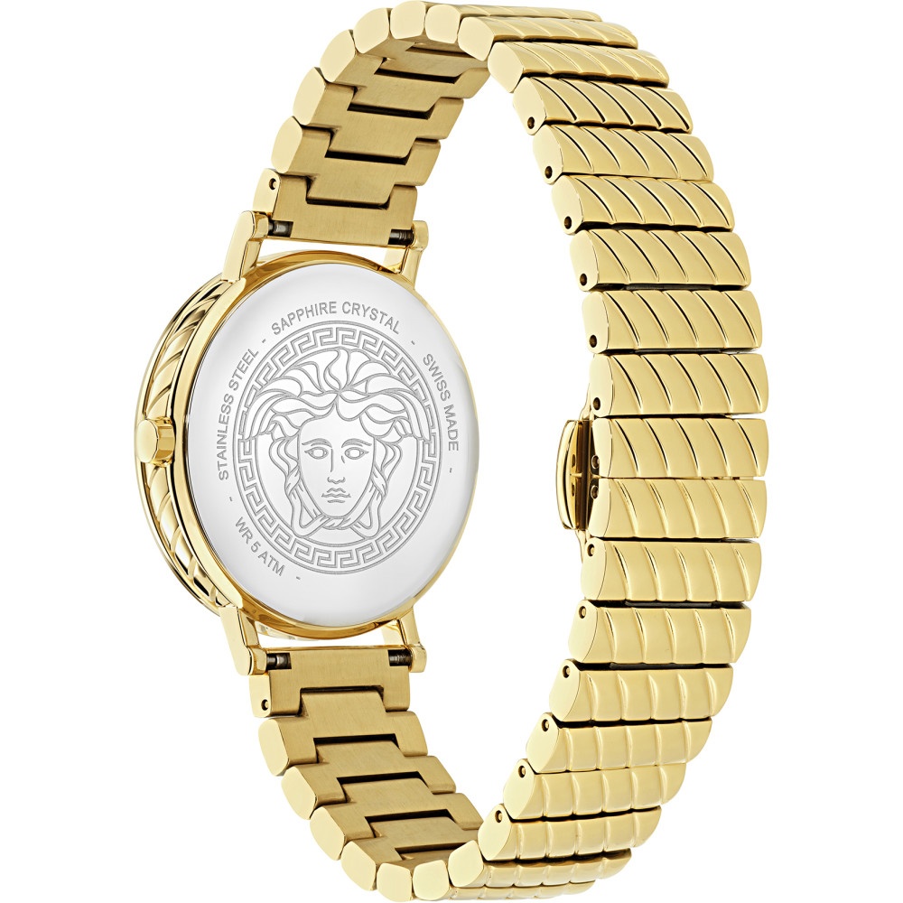 Versace DELPHINUS 35мм/женские часы/кварцевые/золотистый циферблат/стальной браслет /50м/Сапфировое антибликовое стекло/Золотистый стальной корпус Швейцария VE0O00525 Гарантия: 2 года