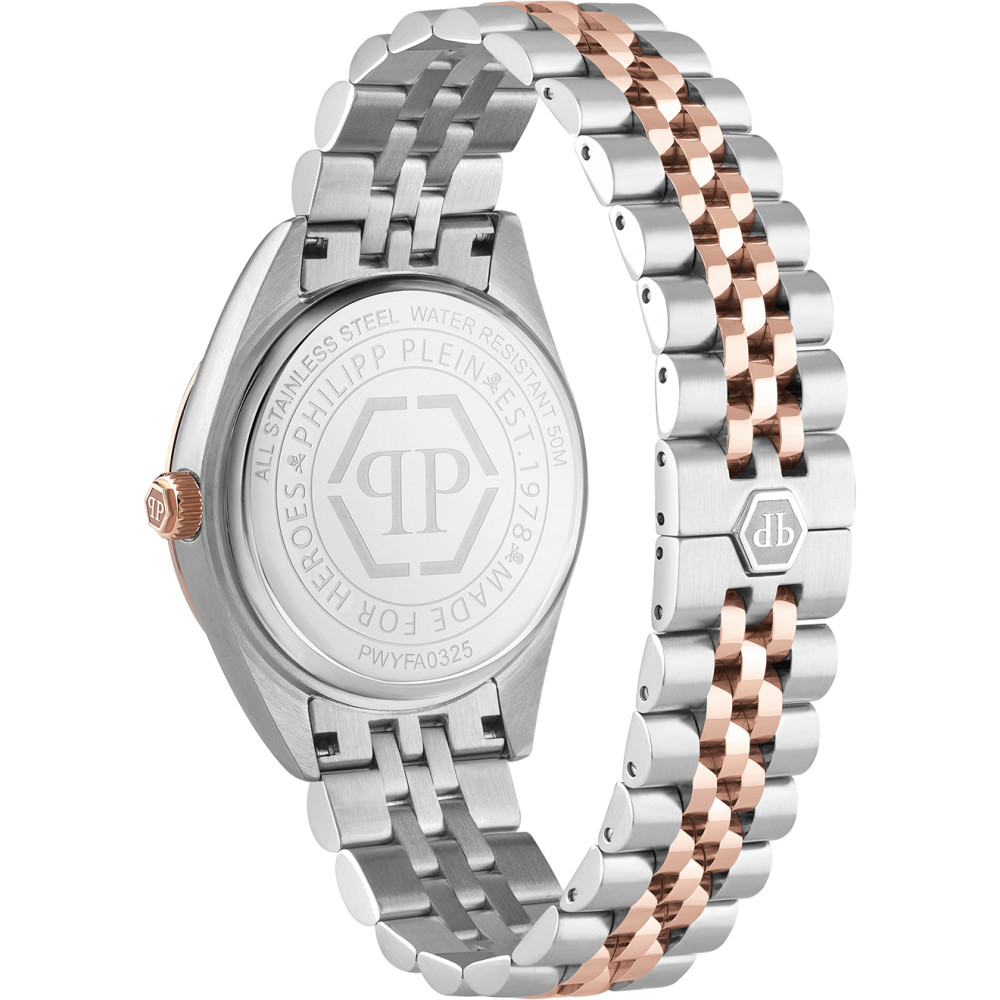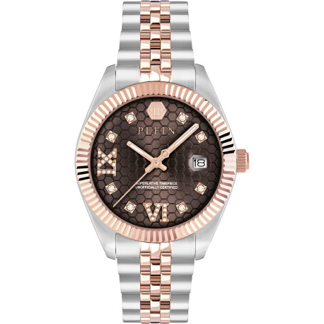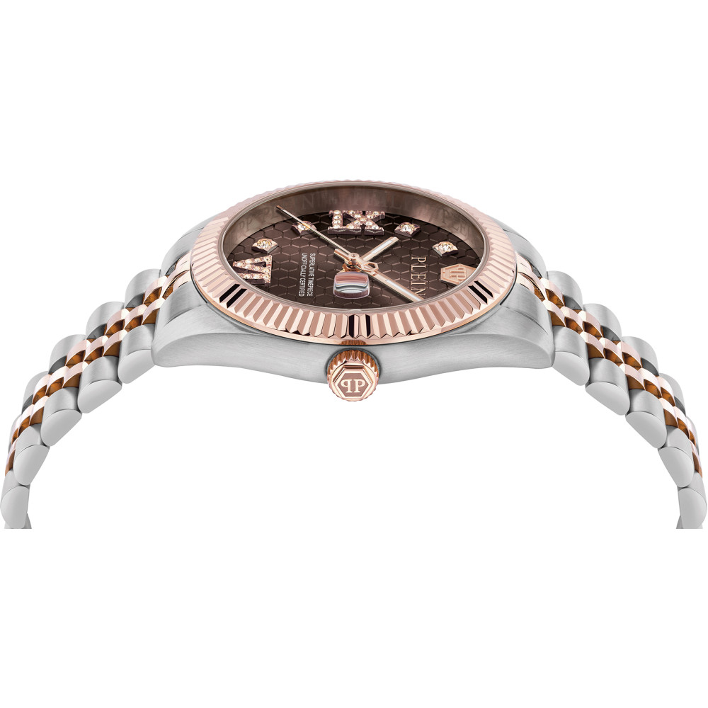 Philipp Plein DATE SUPERLATIVE 34мм/женские часы/кварцевые/коричневый циферблат с кристаллами/стальной браслет /50м/Стальной корпус с RGP Италия PWYFA0325 Гарантия: 2 года