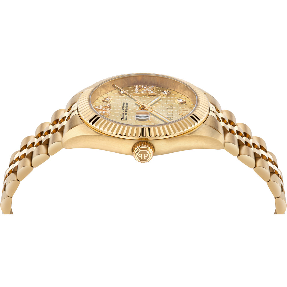 Philipp Plein DATE SUPERLATIVE 34мм/женские часы/кварцевые/золотистый циферблат с кристаллами/стальной браслет /50м/Стальной корпус с GP Италия PWYFA0425 Гарантия: 2 года