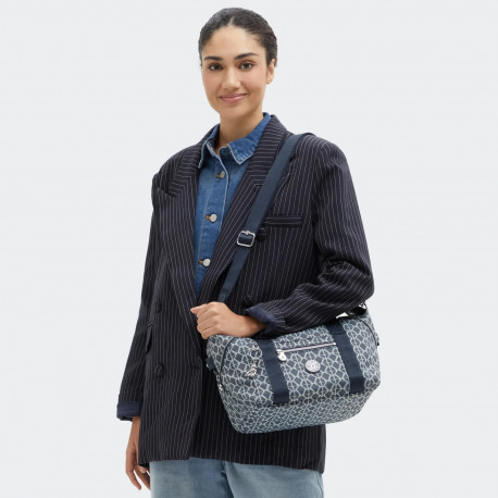 Женская сумка среднего размера Kipling ART MINI в синем жаккардовом дизайне с подвеской в виде обезьянки. Трансформирующийся дизайн с регулируемыми углами на молнии, которые мгновенно меняют размер и форму сумки. Две ручки и длинный ремень предлагают вариативность в ношении (в руках, на изгибе руки или на плече). Эта небольшая сумочка легкая и вместительная, а обезьянка Kipling добавит особого настроения в каждый ваш выход .